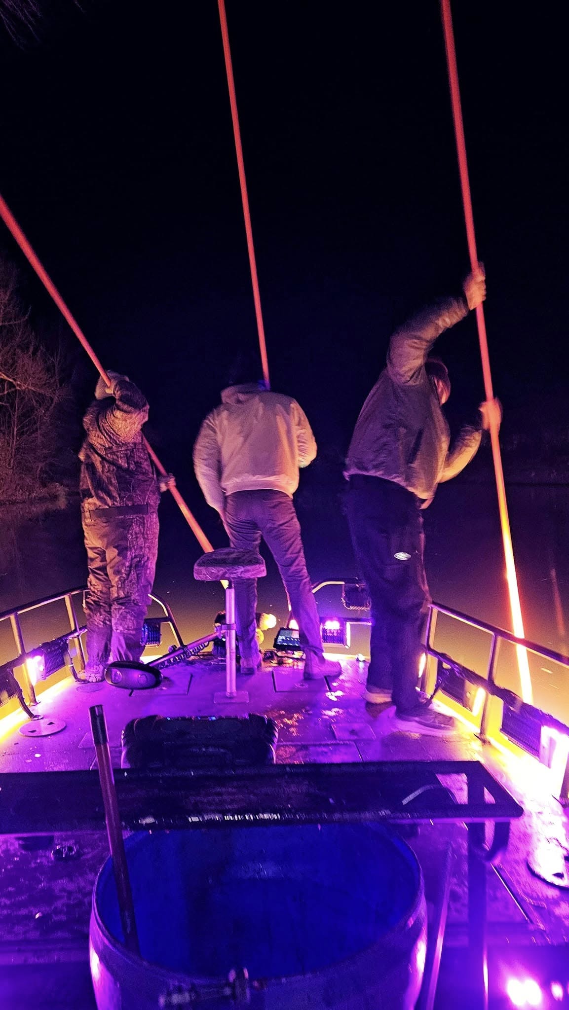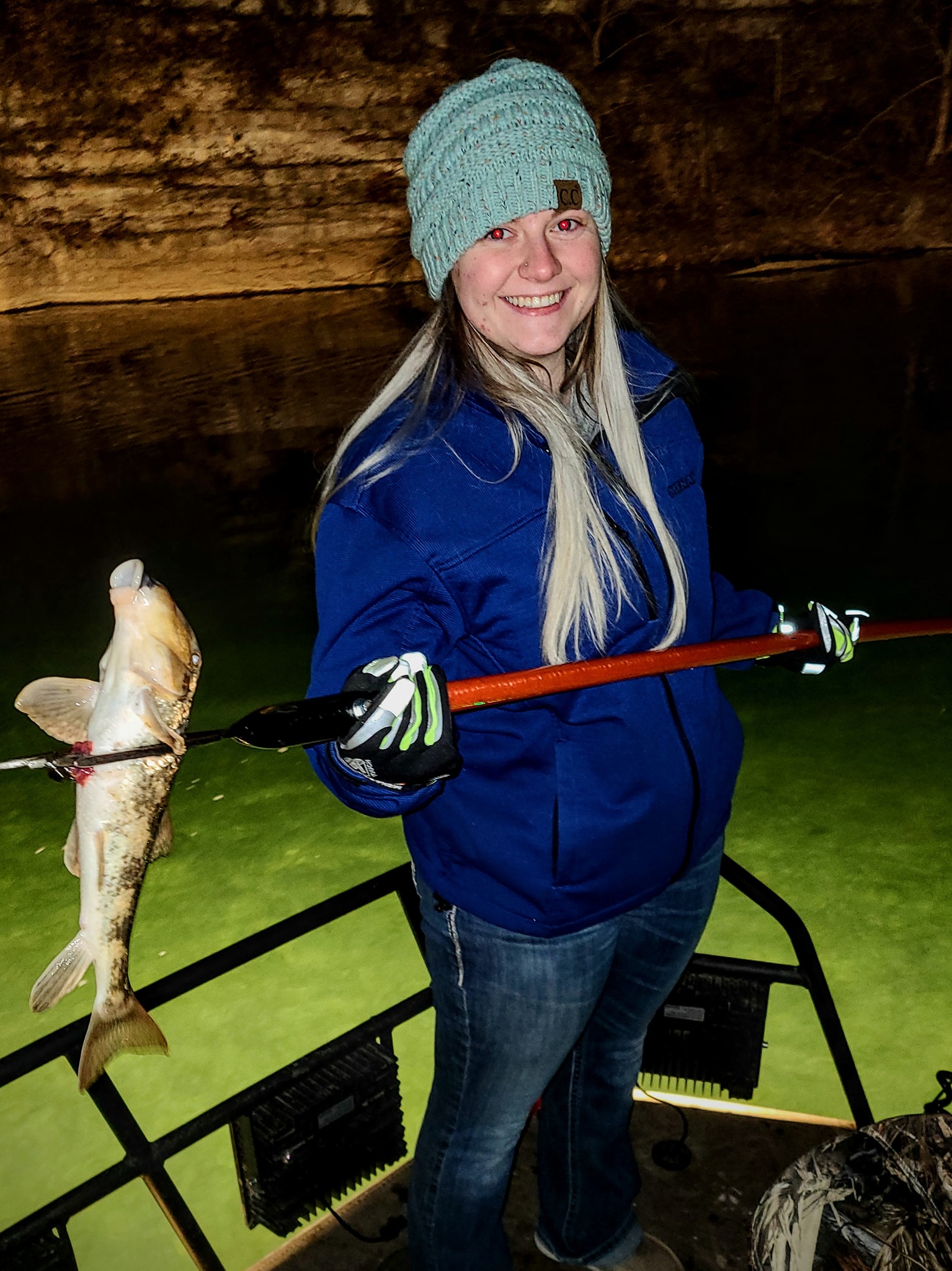 Sucker gigging is a long-standing Ozark Mountain tradition that offers a fun, hands-on night fishing experience the whole family can enjoy. Using a gig pole—sometimes reaching up to 20 feet long—you’ll target sucker fish and carp from a boat under powerful LED lights that illuminate the clear, shallow winter waters.